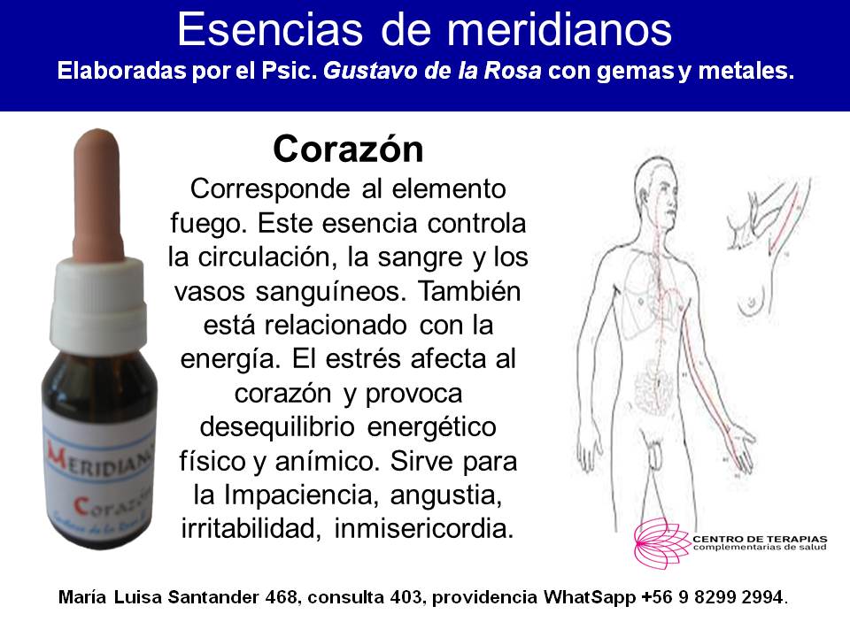 Bajo el mismo concepto de las esencias florales del Dr. Bach, estas fueron elaboradas por el Psic. Gustavo de la Rosa con gemas y metales. Ayudan al equilibrio del flujo energético, en relación a las cualidades de cada uno, las emociones asociadas a los órganos y sistemas correspondientes y el tratamiento de diversas dolencias físicas y psicológicas vinculadas al bloqueo de los canales y centros energéticos.